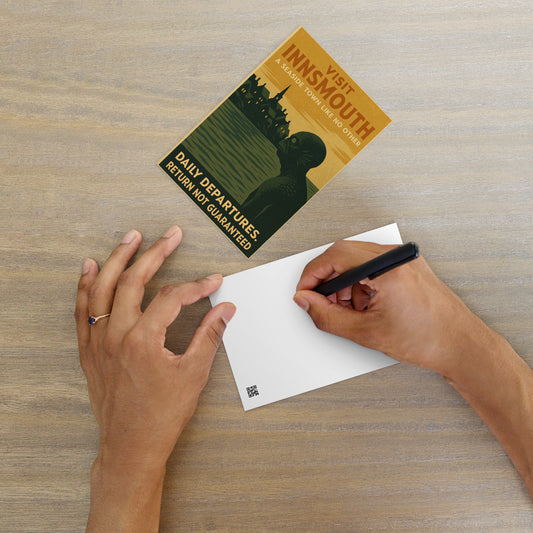 Postcards is a collection that captures distant echoes from forgotten realms and unimaginable places. With Lovecraftian aesthetics and cryptic designs, each card feels like a message from the edge of reality. Send a note—or a warning—from beyond the stars.