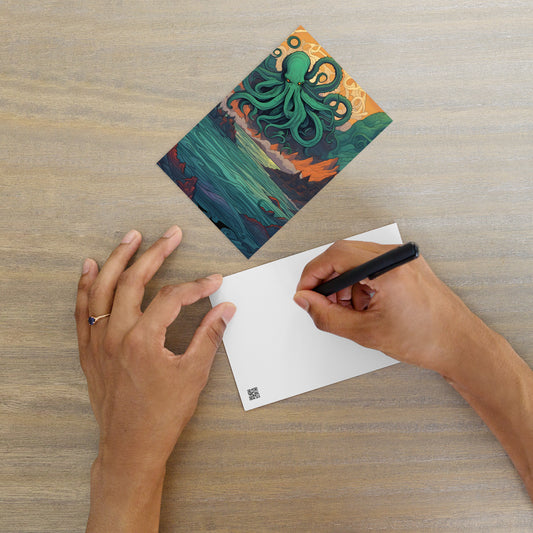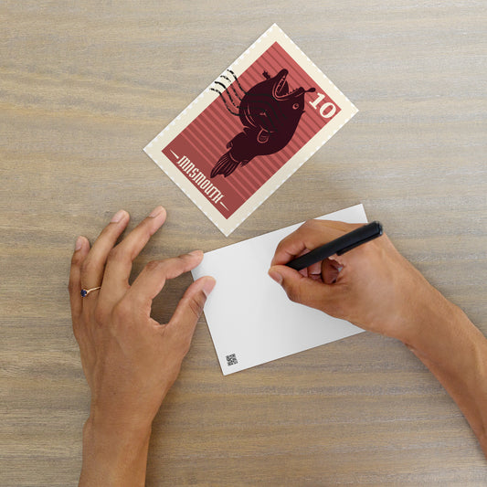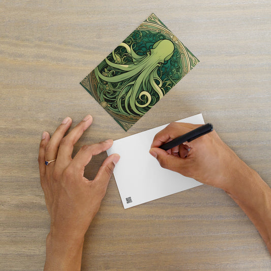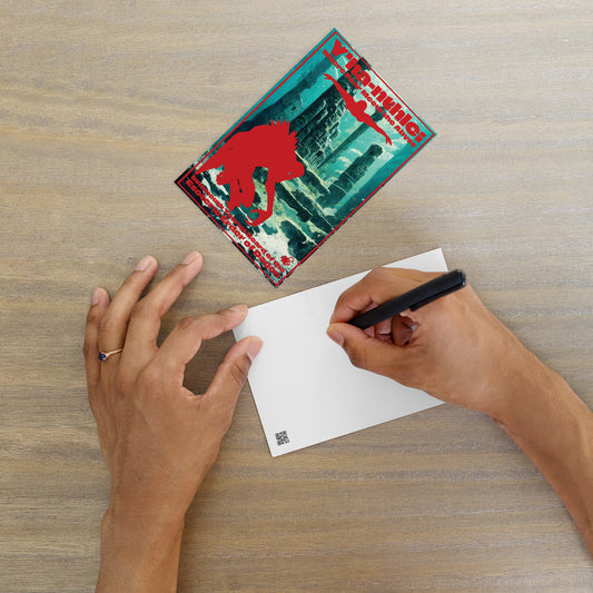 Postcards is a collection that captures distant echoes from forgotten realms and unimaginable places. With Lovecraftian aesthetics and cryptic designs, each card feels like a message from the edge of reality. Send a note—or a warning—from beyond the stars.
