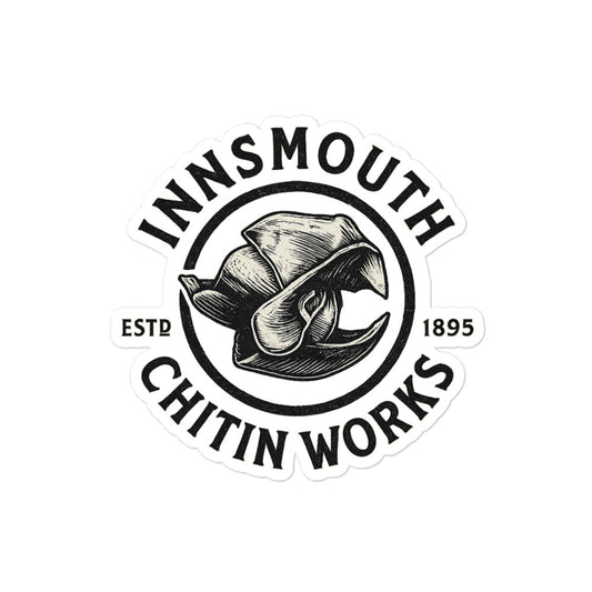 Innsmouth Chitin Works – Vintage Monochrome Logo Blasenfreie Aufkleber