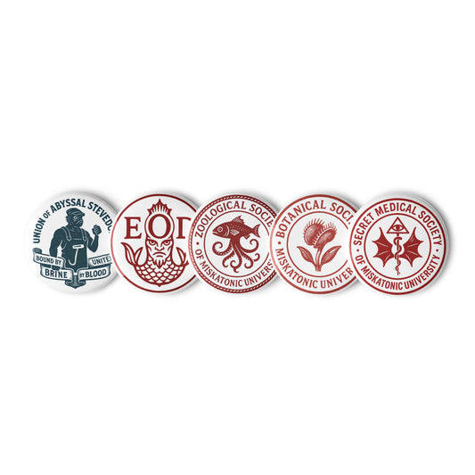 Lovecraft Innsmouth Cthulhu Miskatonic University Set von Pin-Buttons