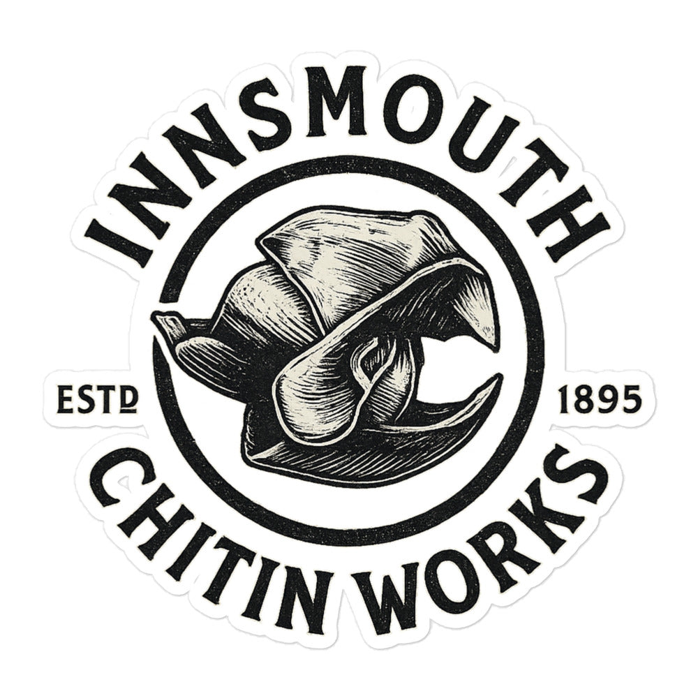 Innsmouth Chitin Works – Vintage Monochrome Logo Blasenfreie Aufkleber