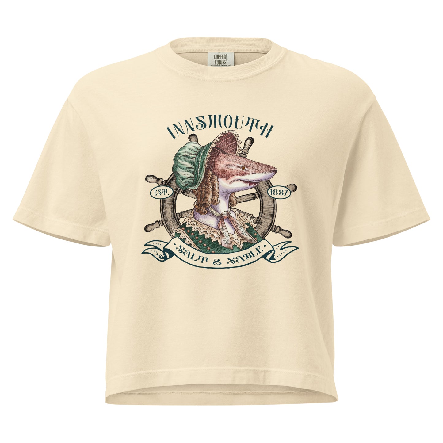 Innsmouth Salt & Sable – Shark Lady Damen-T-Shirt im schweren Kastenformat