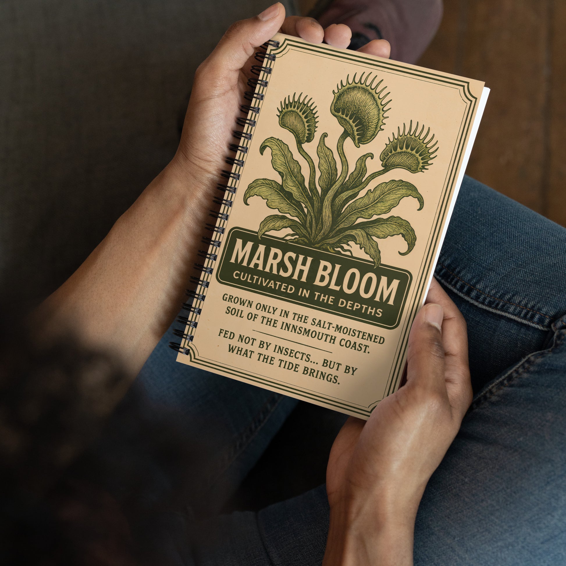Die Sumpfblüte ist keine gewöhnliche Pflanze – sie gedeiht im salzigen Boden der Küste von Innsmouth und ernährt sich von dem, was die Flut bringt. Diese botanische Vintage-Illustration fängt die eindringliche Schönheit dieser tiefgründigen Art ein, die aus Salz, Schatten und Geheimnissen geboren wurde, die man besser vergraben lässt.